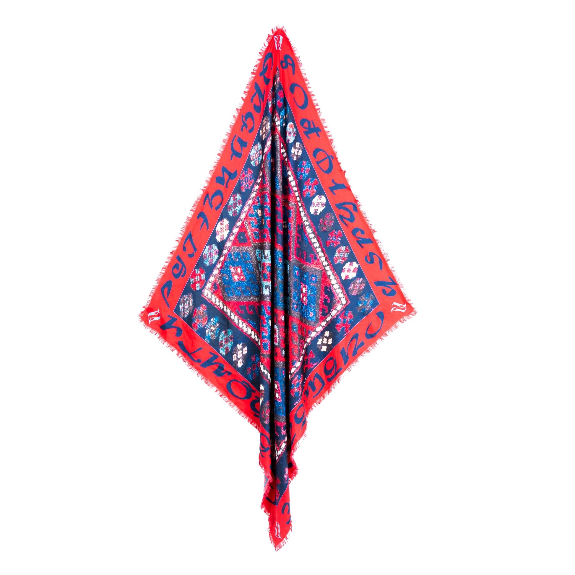 The scarf, featuring the Ballad of the Armenian Alphabet and traditional Armenian carpet motifs, seems to be a stunning blend of cultural significance and craftsmanship.
